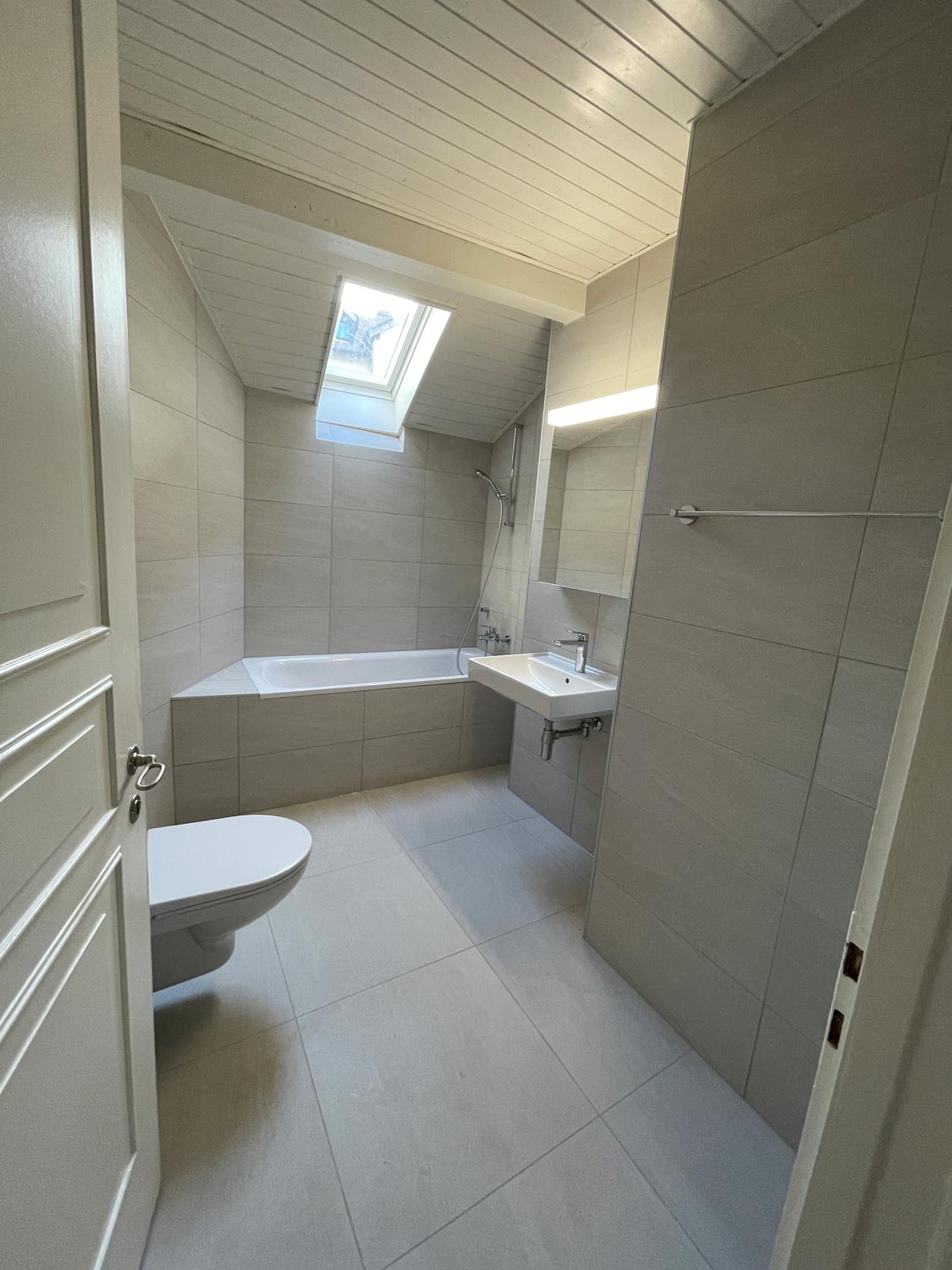 Redistribution des espaces pour plus de confort, installation de nouveaux sanitaires, mobilier contemporain et faïence murale design.