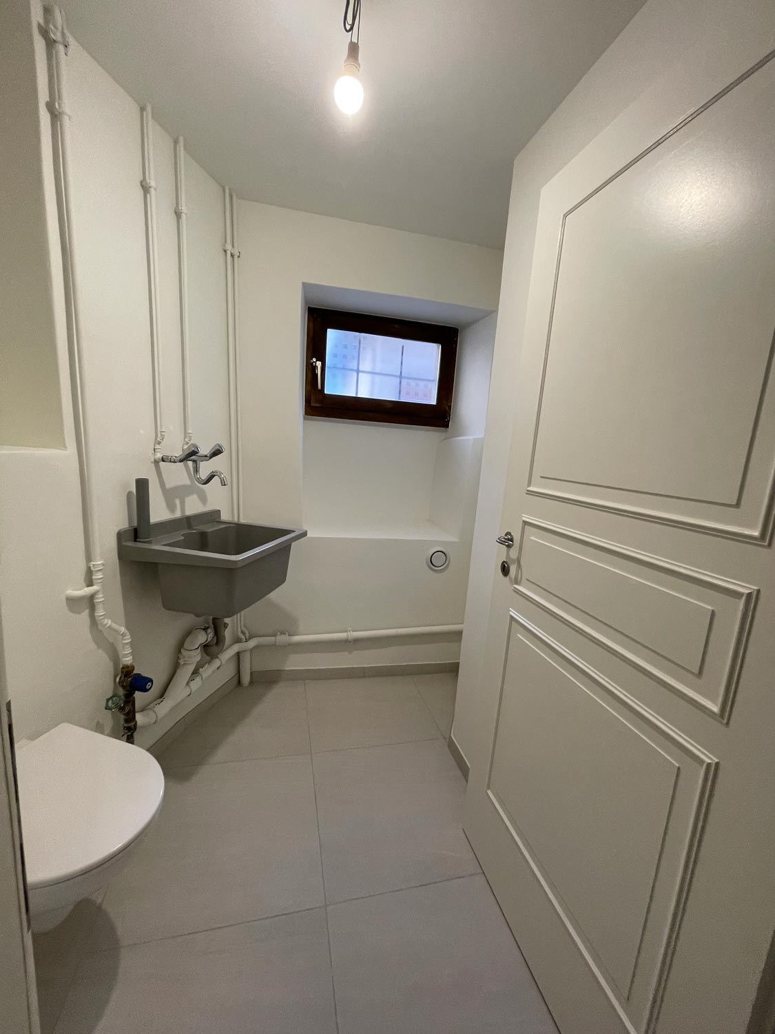 Les anciens éléments sanitaires, la cuisine, les revêtements et les faux plafonds ont été déposés avec soin afin de repartir sur une base saine.